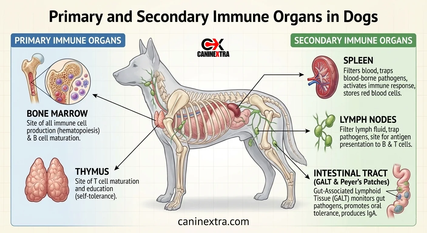 Your dog’s immune system operates through a coordinated response involving multiple organs and millions of specialized cells.